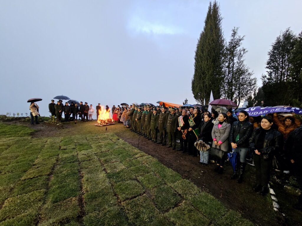 “Aquí, en la tierra de los defensores de la democracia y nuestros recursos naturales, en la ciudad de El Alto, donde el viento es testigo de la dignidad de un pueblo que nunca se rinde y que combatió constantemente contra las injusticias; izamos estos símbolos sagrados, símbolos de nuestros 200 años de libertad”, expresó la autoridad.